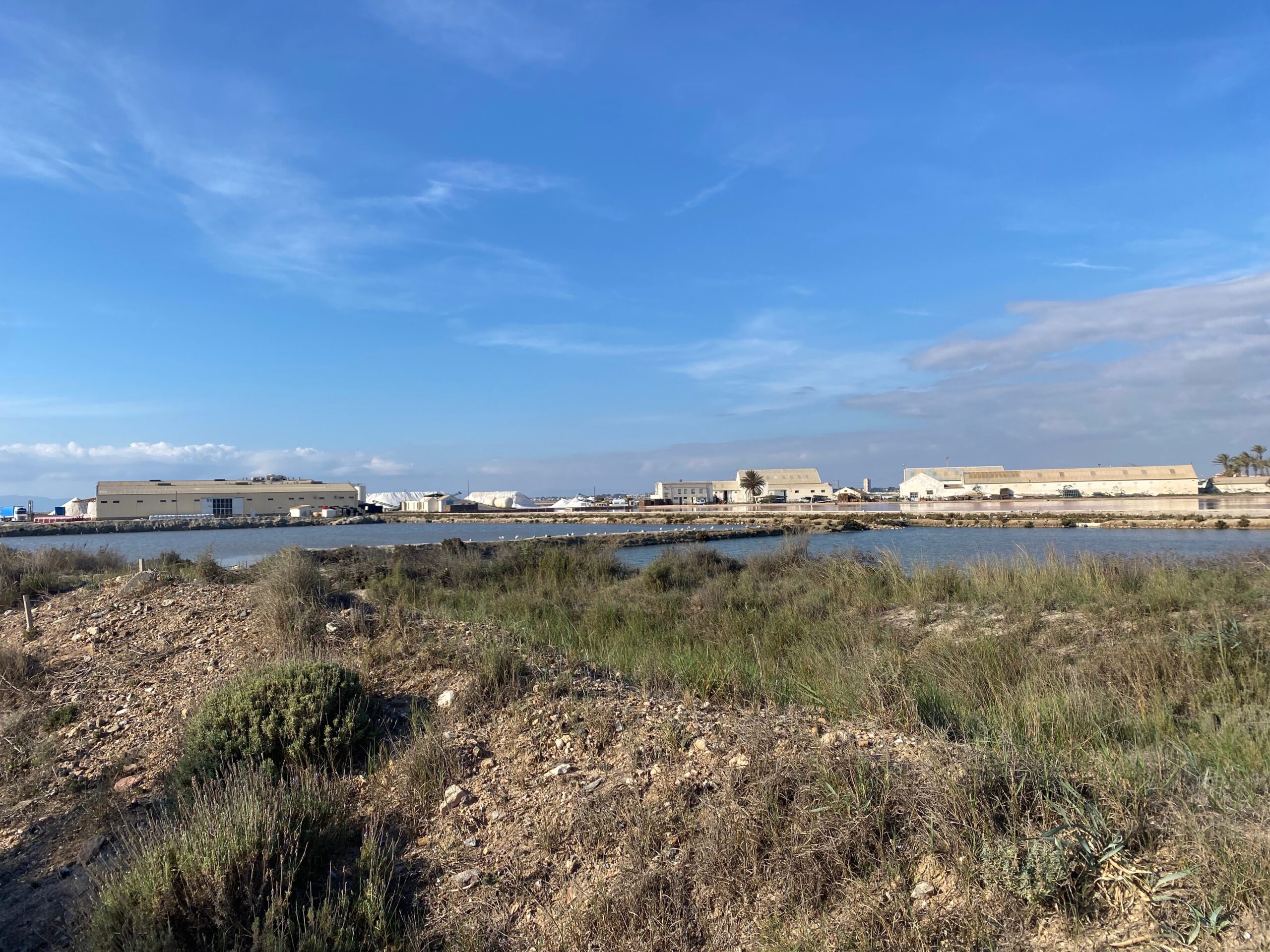Hierna gaat de wandeling verder langs de zoutmeren van San Pedro del Pinatar. Deze zijn uniek vanwege hun bijzondere kleur. Van roze tot rood, afhankelijk van de concentratie van zout en algen in het water. Een fantastisch natuurverschijnsel. De Salinas zijn het leefgebied van de flamingos die vaker met hun kop onder water staan dan erboven.
